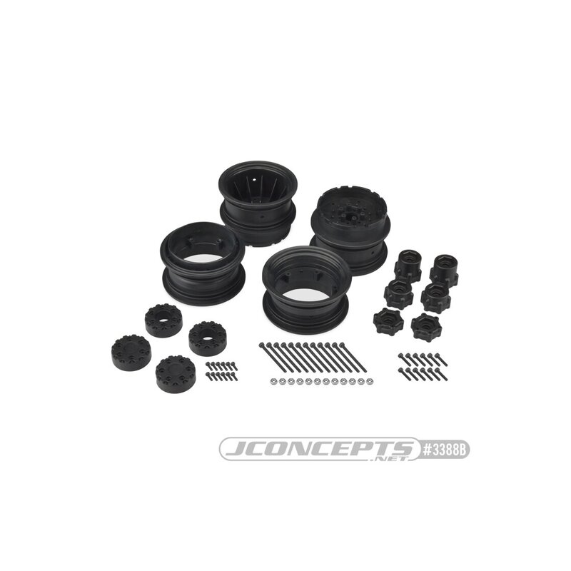 JConcepts Krimson Dually - 2.6" dual truck wheels w/ adaptors, covers - (black) - 2pc. - JCO3388B