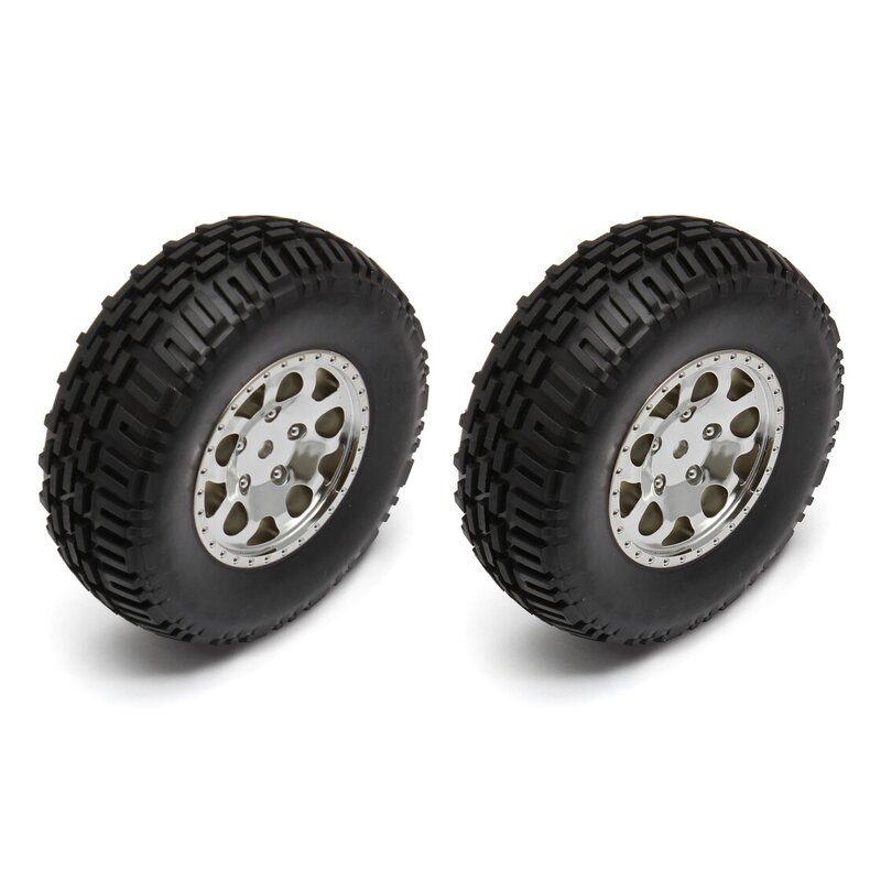 Team Associated SC10B Front Wheels/Tires, mounted, chrome - AE91222