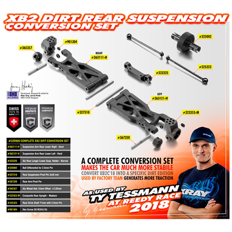 Xray 320900 COMPLETE XB2 DIRT REAR SUSPENSION CONVERSION SET